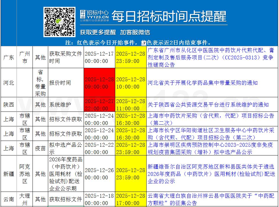今日政策汇总与招标时间点提醒12月27日-12月29日